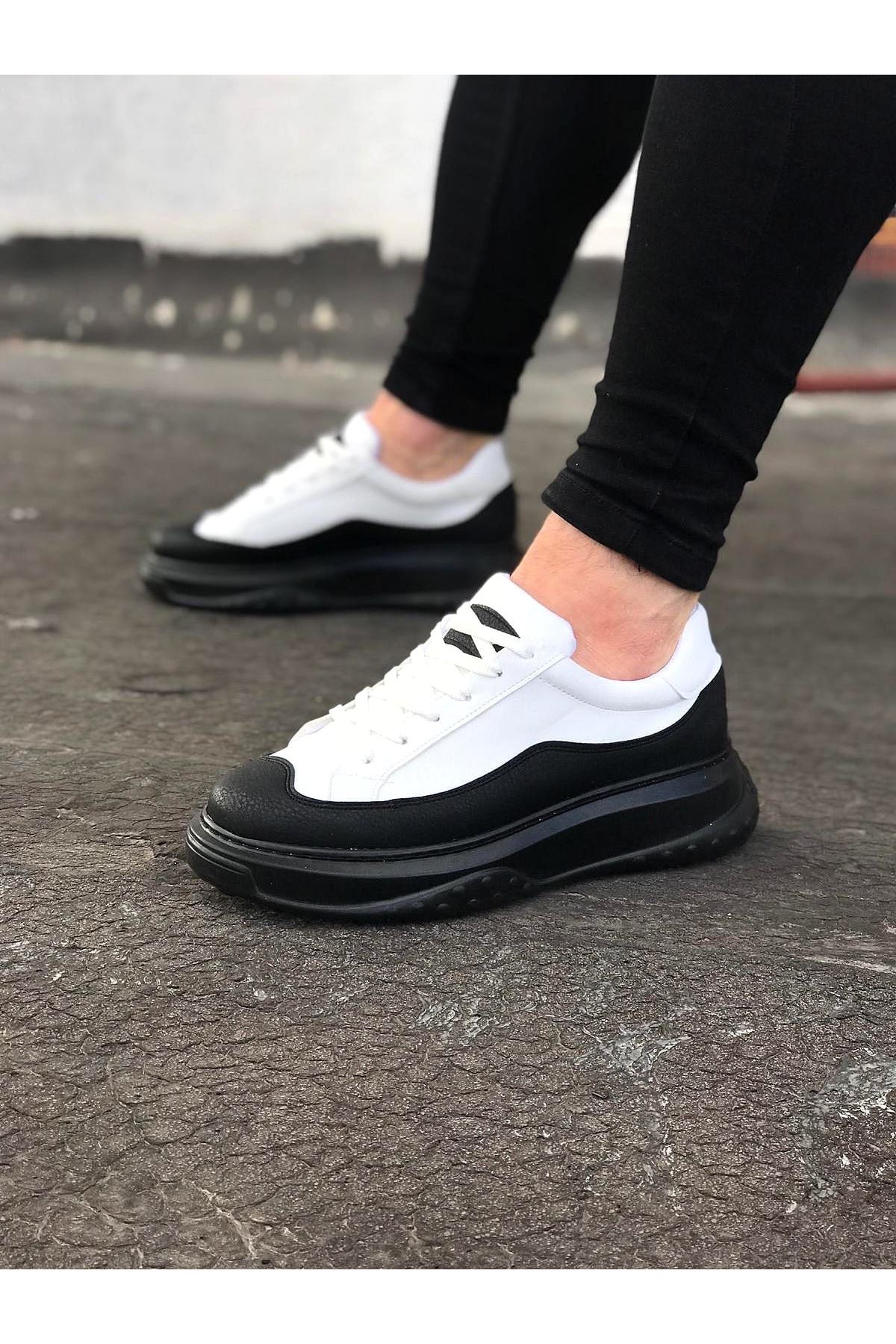WG029 Siyah Beyaz Kalın Taban Casual Erkek Ayakkabı